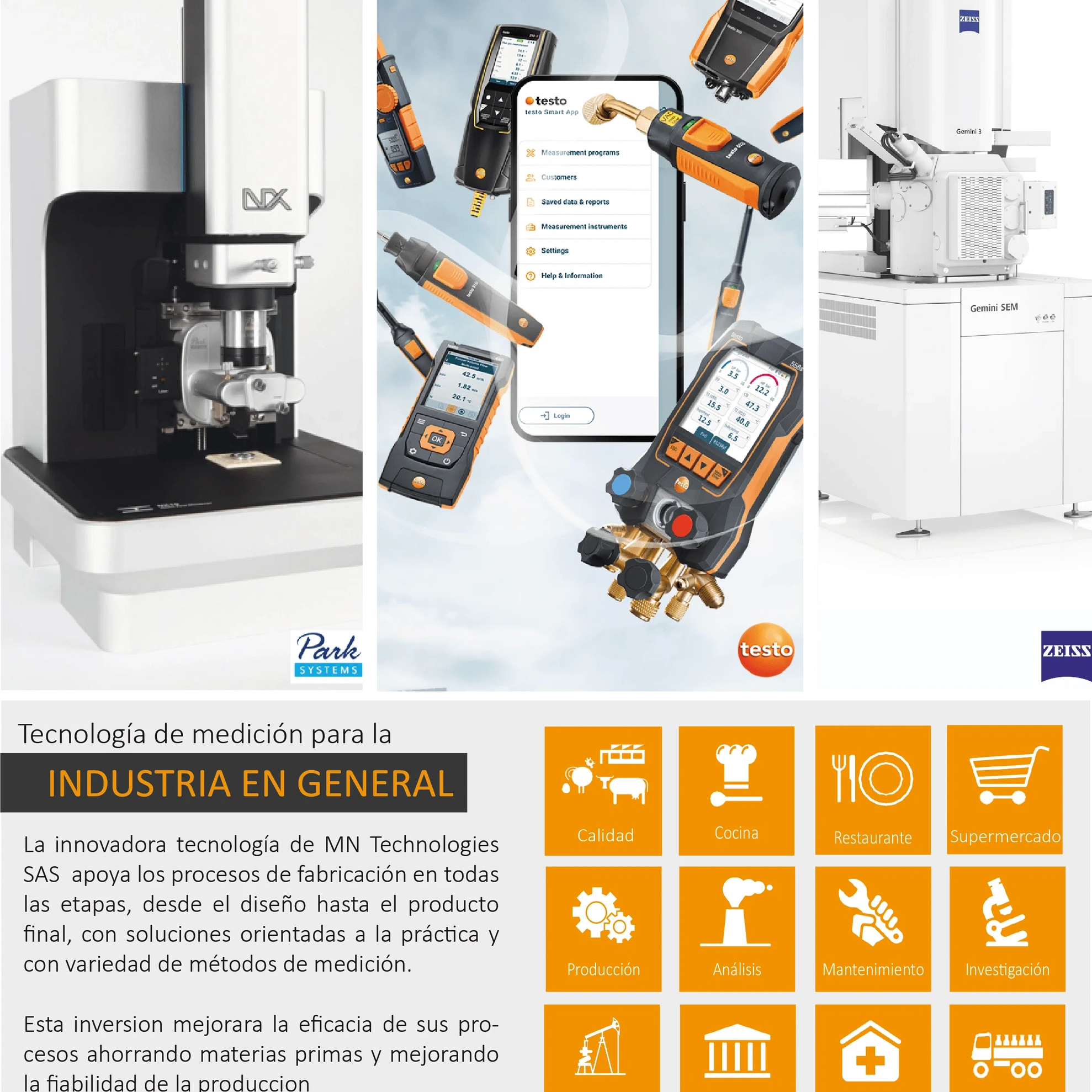 En MNT somos representantes exclusivos en Colombia de marcas líderes a nivel mundial como Testo, Park Systems y ZEISS Microscopy. Brindamos soluciones tecnológicas en medición de variables físicas, enfocadas en la precisión, confiabilidad y trazabilidad de cada resultado.