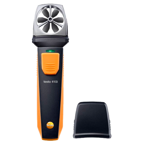 Anemómetro de molinete con manejo a través del teléfono inteligente testo 410i, incl. tapa de protección, pilas y protocolo de calibración.