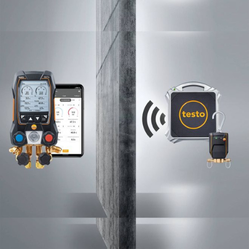 Gran alcance por Bluetooth de hasta 150 m en combinación con el analizador de refrigeración de Testo (solo hasta 30 m)