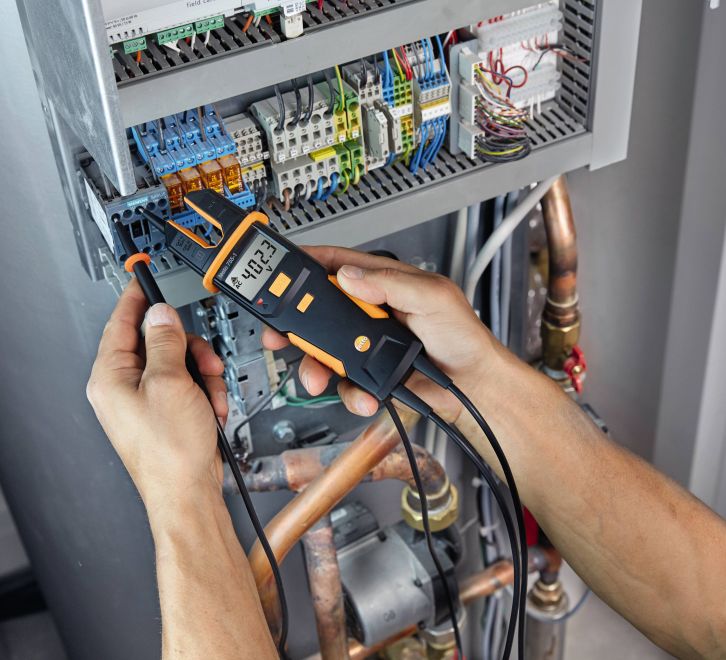 Ya ha llegado el primer detector de tensión y corriente: el testo 755-1. Con un solo dispositivo, comprobará la presencia o ausencia de tensión en instalaciones o circuitos eléctricos, medirá el flujo de corriente o el consumo eléctrico y llevará a cabo pruebas de continuidad. Asimismo, el detector de tensión testo 755-1 detecta y selecciona todos los parámetros eléctricos de forma automática: De esta forma puede empezar las mediciones; sin conexión ni selección.