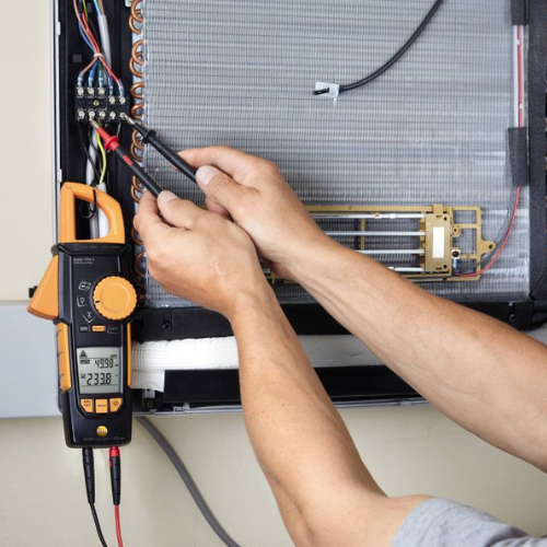 Las pinzas amperimétricas testo 770-1 son ideales para la medición de corriente sin contacto en cables eléctricos o conductores que están colocados muy juntos y cuyo diámetro es pequeño. Gracias al mecanismo de sujeción único, agarrará cada uno de los cables sin problema ninguno y con total seguridad.