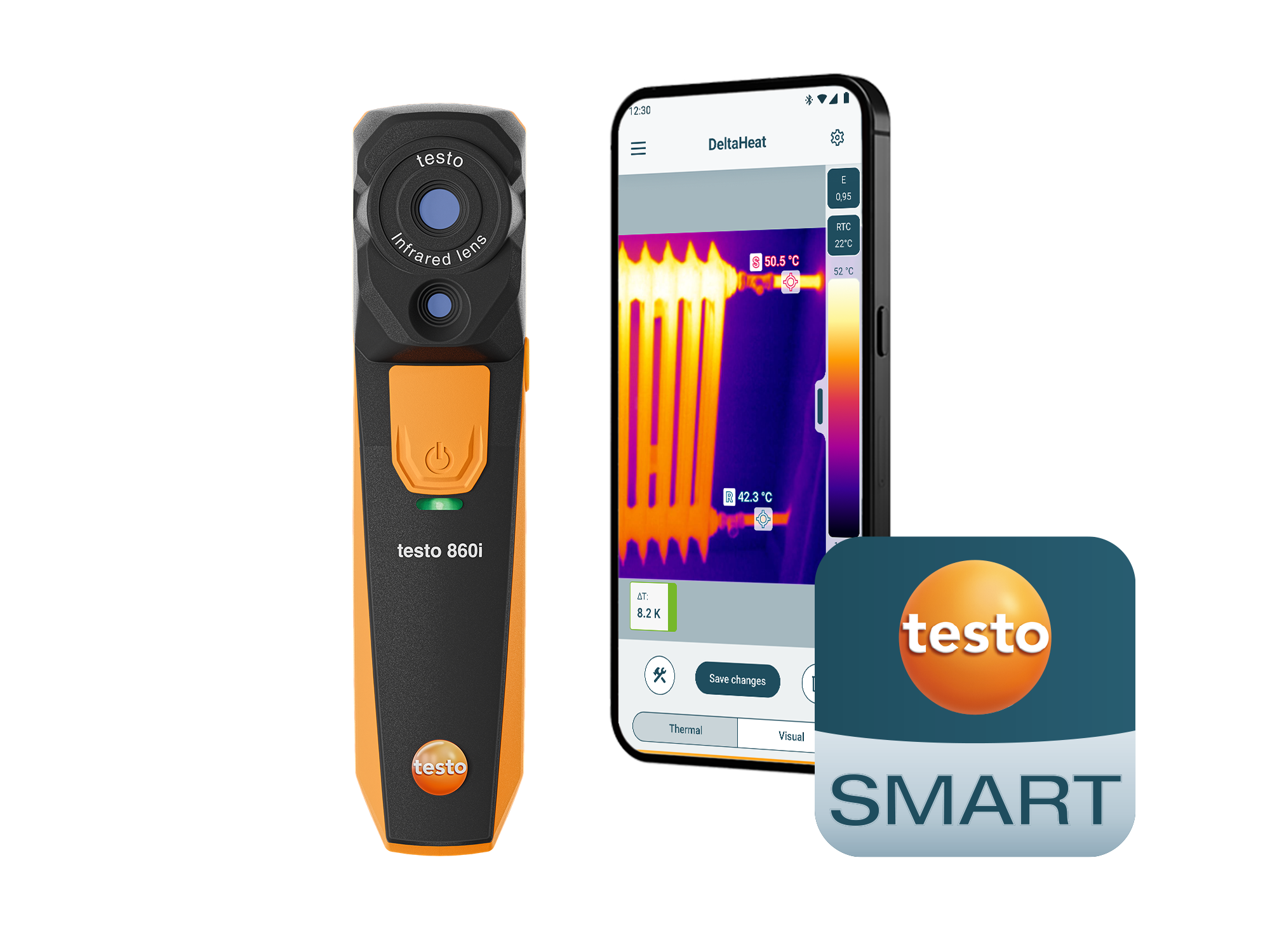 La nueva cámara termográfica testo 860i para smartphones, con su sencillo manejo y visualización en la App testo Smart, es ideal para realizar comprobaciones rápidas en las aplicaciones del sector HVAC/R, mantenimiento preventivo, construcción, y otros sectores.
