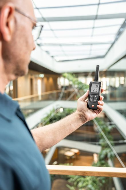 La humedad ambiental relativa y la temperatura ambiente son dos factores decisivos, por ejemplo, para valorar la calidad del aire interior y el nivel de confort. Es decir, si desea garantizar que las personas se sientan bien en recintos cerrados o que predominen condiciones perfectas en los almacenes, el termohigrómetro testo 625 es la elección ideal. El testo 625 no solo calcula automáticamente la temperatura del punto de rocío y de bulbo húmedo para obtener resultados precisos, sencillos y rápidos. El valor medio temporal y puntual también se muestra inmediatamente. Y con la App testo Smart podrá aprovechar el termohigrómetro al máximo: