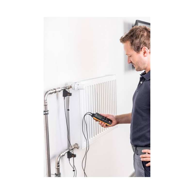 Medición rápida y precisa de temperatura diferencial con dos sondas TP tipo K incluidas. Amplio rango de -50 °C a 1000 °C, compatible con sondas TP tipo K convencionales. Configuración, visualización y documentación fácil mediante la App testo Smart.