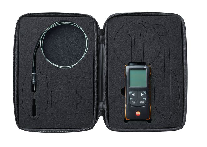 El compacto termómetro testo 925 (1 sonda TP tipo K, Clase 1 incluida) es la solución versátil para la medición de la temperatura en el sector industrial y de construcción de modo sencillo, rápido y preciso. En este sentido, la App testo Smart le apoya con útiles funciones tales como la configuración, la visualización (incluso como segunda pantalla) y el almacenamiento, así como la documentación de los valores medidos directamente en la App.