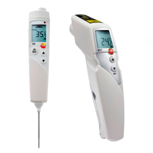 Para determinadas aplicaciones es necesaria la medición de la temperatura interna, o un termómetro de medición del interior de los alimentos antes de sevirlos. Para ello, Testo ofrece un set económico compuesto del testo 831 y el conocido termómetro de penetración testo 106.