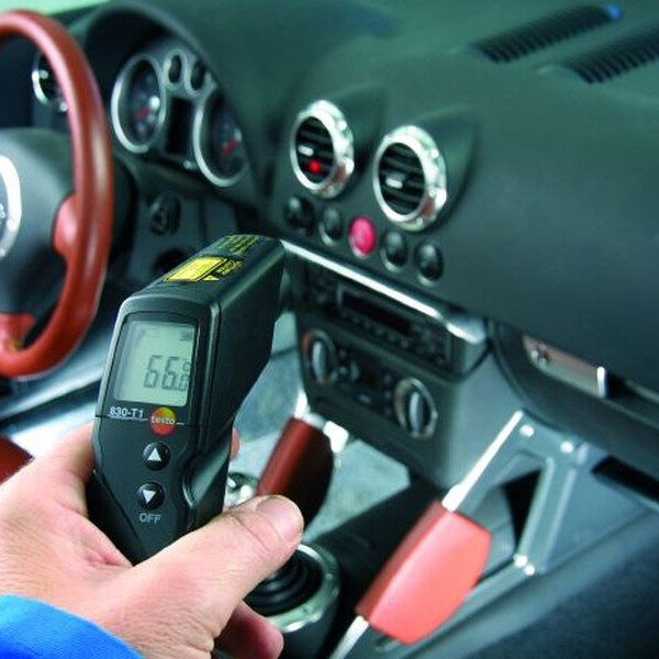 El termómetro por infrarrojos testo 830-T1 con láser para el marcado de la zona de medición y óptica 10: 1 es adecuado para medir sin contacto la temperatura de superficies tanto en la industria como en la artesanía.