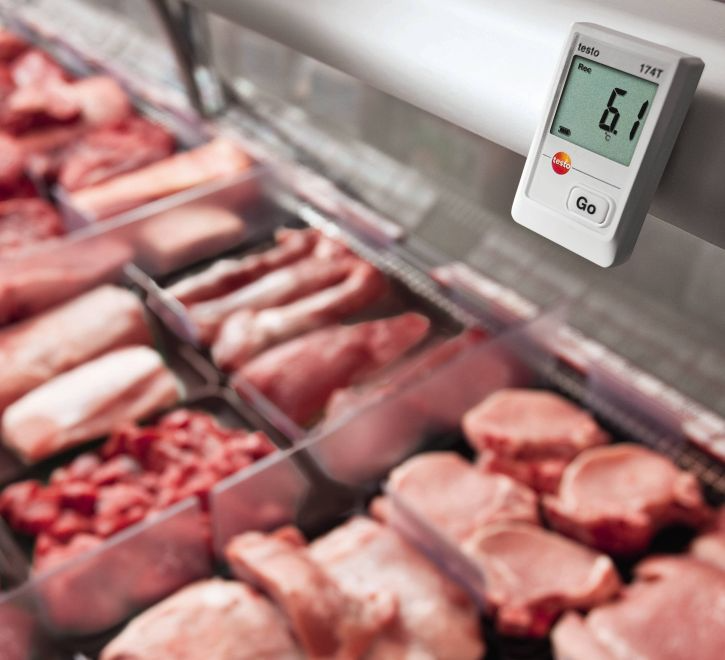 Si profesionalmente tiene que trabajar con alimentos o productos farmacéuticos, sabrá que la temperatura de almacenamiento de las mercancías bajo ninguna circunstancia debe exceder determinados límites. El mini registrador de datos de temperatura testo 174 T le puede ayudar a mantener la temperatura especificada. Registra los valores de temperatura de manera segura garantizando así una documentación y registro ininterrumpidos de los datos de medición.
