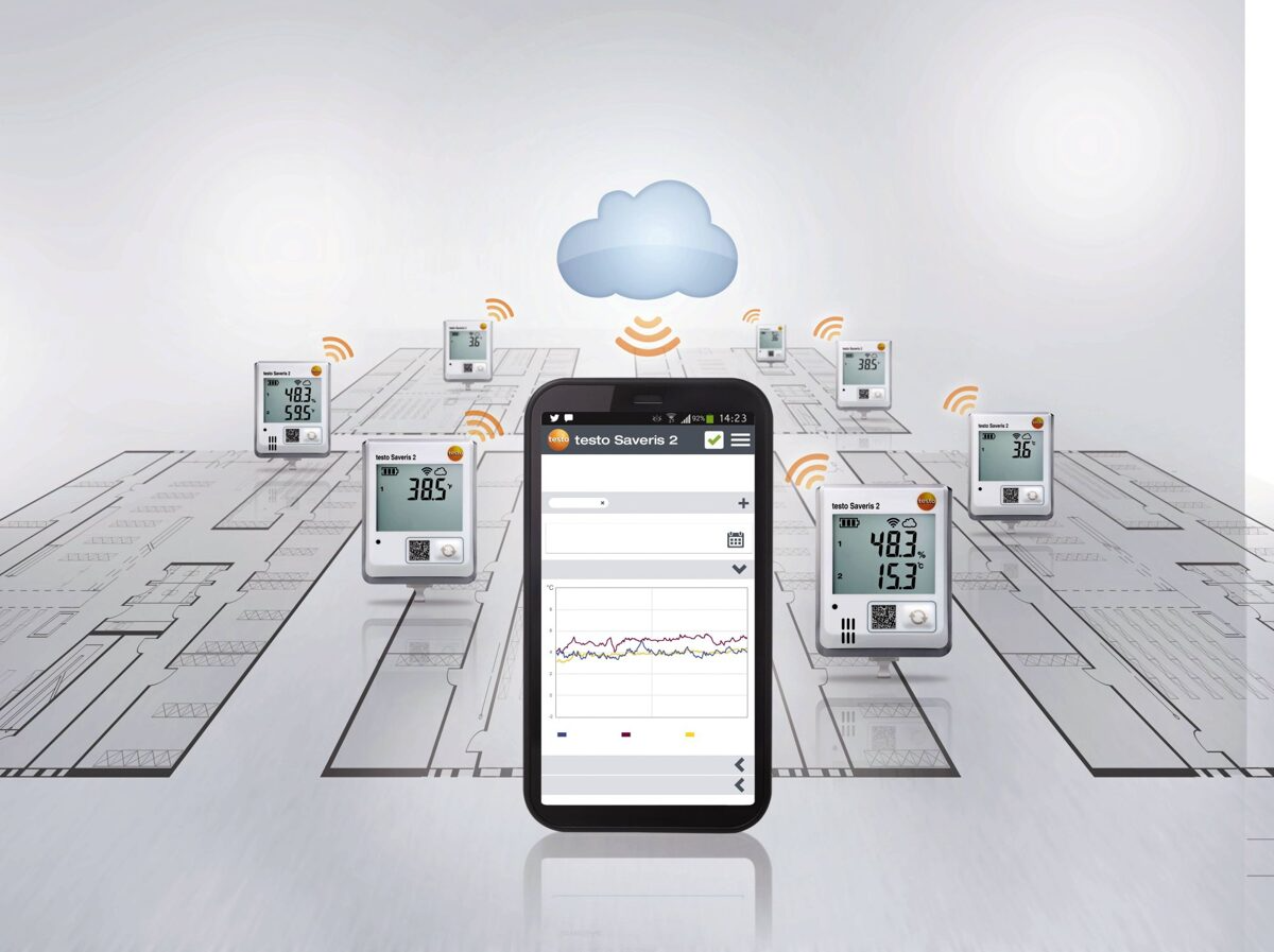 El sistema de registro de datos WiFi testo Saveris 2 es la solución simple, flexible y segura para medición y monitorización de la temperatura y la humedad en sus almacenes, cámaras de refrigeración y salas de trabajo. Instalar el sistema es un juego de niños y se puede realizar a través de un navegador.